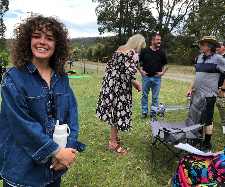 A tiny crew of just five was used to shoot 'Cake Day' a two hander film for Syndey University. Andrew Vial and Annaliese Heber were the performers.